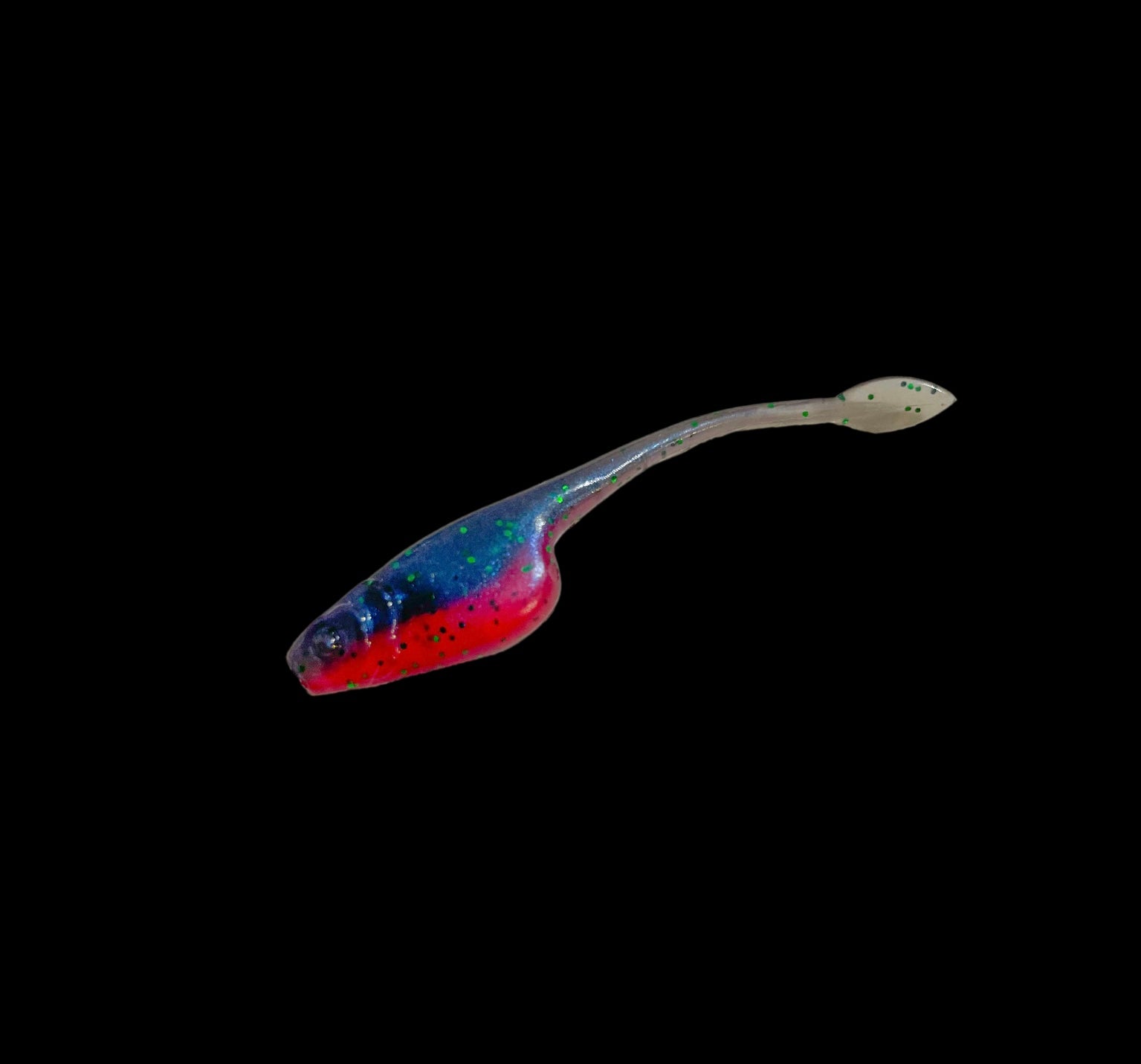 Everyone has a baby shad type bait. There’s a reason for it, they work. This is our offering, a 2” shad style bait with a little Risen Lures flair. We added a spade tail to it to help create a little more drag and movement. Gave it a good sized belly and a plastic and scent mixture that gets bit and provides good durability. We think it’s a winner. Offered in proven colors and 15 per pack!